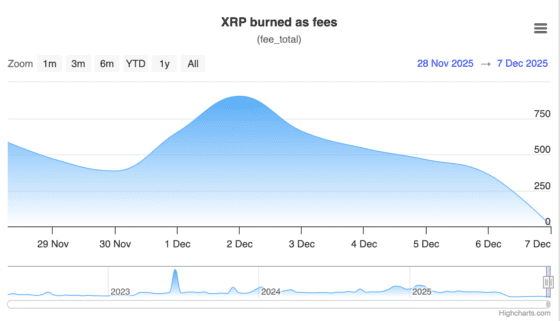 6일(현지시각) 엑스알피스캔(XRPSCAN)에 따르면 XRP의 일일 수수료 소각량은 전날 462XRP에서 186XRP로 줄었다. 감소율은 약 60%로 최근 며칠간 유지되던 높은 온체인 활동이 뚜렷하게 둔화한 모습이다.