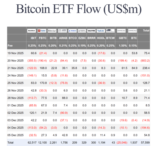 비트코인 ETF 시장은 11월 말부터 반등 흐름을 보이다 12월 초 재차 자금이 이탈하는 혼조 국면에 진입한 모습이다. GBTC의 대규모 유출은 멈췄지만, IBIT 등 신흥 강자에서도 차익 실현 매물이 나타나며 단기 조정 압력이 나타났다.