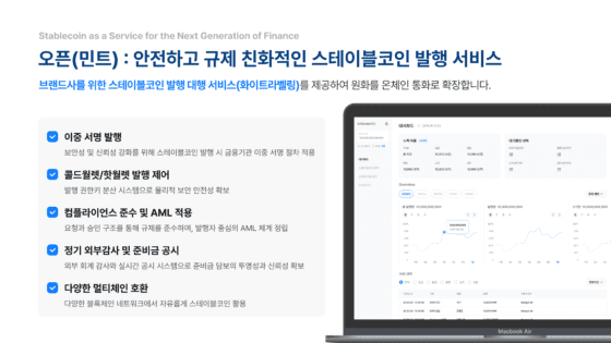 오픈에셋은 이를 위한 발행·유통 인프라 개발에 집중하고 있다. 오픈민트(OpenMint) 발행 시스템을 통해 해킹·오발행 방지를 위한 이중 서명(멀티시그) 구조를 구축했으며, 발행량과 예치금 일치를 실시간 검증하는 시스템도 도입했다. 해당 시스템은 국내 유수 은행들과 두 차례 이상 기술 검증을 완료했다.