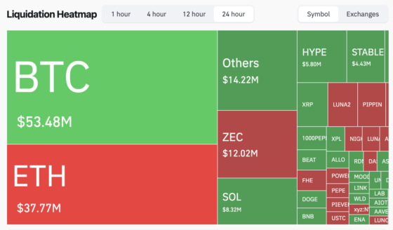 전체 디지털자산 선물 포지션 청산 규모는 1억7590만달러로 전일보다 11.45% 하락했다. 비트코인 청산액은 5348만달러였다. 이 가운데 롱(매수) 포지션 청산은 숏(매도) 포지션 청산 규모의 2배를 차지했다. 이더리움 청산액은 3777만달러였다. 롱과 숏 청산 규모는 거의 비슷했다.