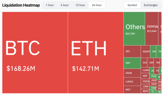 전체 디지털자산 선물 포지션 청산 규모는 4억3416만달러로 전일보다 134% 급증했다. 비트코인 청산액은 1억6826만달러였다. 약 80%의 청산이 숏(매도) 포지션에서 발생했다. 이더리움 청산액은 1억4271만달러로, 숏 포지션 비율이 약 76%였다.