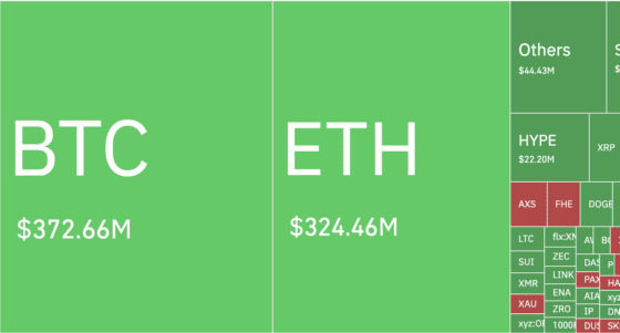 파생상품 시장에서는 변동성 확대와 함께 청산 규모가 크게 늘었다. 코인글래스에 따르면 최근 24시간 동안 디지털자산 시장에서 약 9억91만달러 규모의 포지션이 청산됐다. 이는 직전 기간 대비 115.13% 증가한 수준이다.