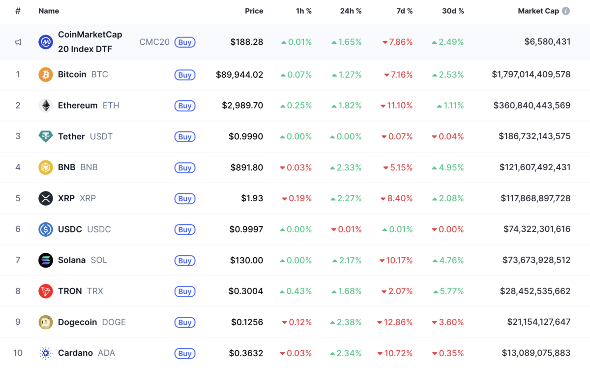 전통 금융시장의 안도 흐름은 디지털자산(가상자산) 시장에도 긍정적으로 작용했다. 비트코인(BTC)은 8만9944달러로 24시간 기준 1.27% 상승했다. 이더리움(ETH)은 2989달러로 1.82% 올랐다.