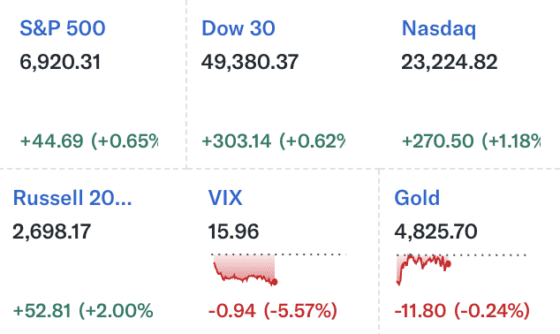 미 동부시간 기준 22일 오전 9시30분 뉴욕 증시에서 S&P500 지수는 6920.31로 전 거래일 대비 0.65% 상승했다. 다우지수는 4만9380.37로 0.62% 올랐고, 나스닥 지수는 2만3224.82로 1.18% 상승했다. 중소형주 중심의 러셀2000 지수는 2698.17로 2.00% 오르며 상대적으로 강한 흐름을 보였다.