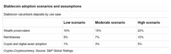 다만 스테이블코인 확산이 금융 시스템을 근본적으로 흔들 가능성은 제한적이라고 봤다. S&P글로벌레이팅스는 “가장 공격적인 시나리오에서도 스테이블코인 보유액은 전체 은행 예금의 8% 미만”이라며 “많은 신흥국에서 예대율이 낮아 은행의 중개 기능과 통화정책 전달에 미치는 영향은 크지 않을 것”이라고 평가했다.