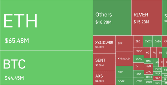 자산별로는 이더리움 청산이 6548만달러로 가장 컸고, 비트코인은 4445만달러였다. 이더리움은 롱 포지션 5384만달러, 숏 포지션 1164만달러가 청산됐고, 비트코인은 롱 3621만달러, 숏 824만달러로 집계돼 매수 포지션 정리가 상대적으로 두드러졌다.