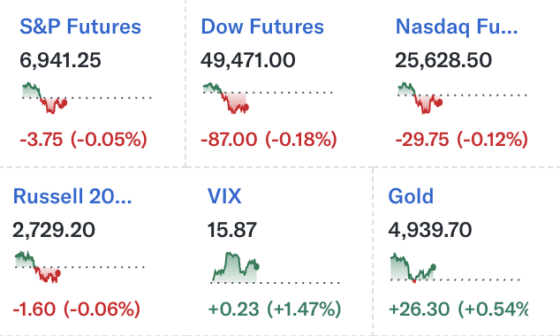 미 동부시간 오전 8시 기준 S&P500 지수 선물은 6941.25로 0.05% 내렸다. 다우지수 선물은 4만9471.00으로 0.18% 하락했고, 나스닥 선물은 2만5628.50으로 0.12% 밀렸다. 러셀 2000지수 선물도 2729.20으로 0.06% 하락하며 중소형주 전반에서도 관망 심리가 나타났다.