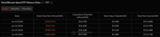25일 소소밸류(SosoValue)에 따르면 비트코인 현물 ETF는 지난 20일부터 23일까지 한 주 동안 총 13억3000만달러(약 1조9349억원)의 순유출을 기록했다. 주초인 20일 4억8338만달러(약 7032억2000만원)가 유출된 데 이어 21일에는 하루 만에 7억871만달러(약 1조원)가 빠져나가며 투자자 불안이 극대화됐다. 결국 비트코인 ETF는 5거래일 연속 자금이 빠져나가며 뚜렷한 약세를 나타냈다.