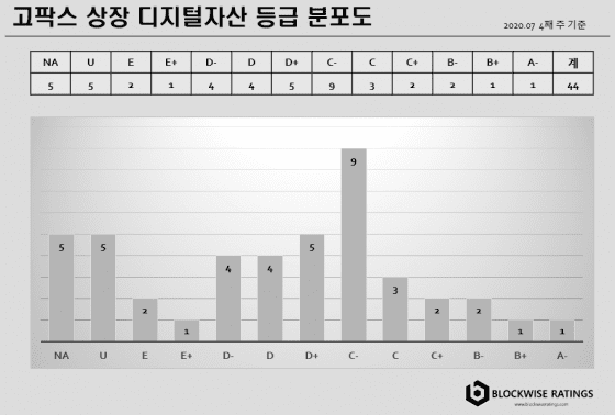 고팍스의 경우 C-등급 이상의 암호화폐 보유 비율은 업비트, 빗썸, 코인원보다 높다. D+등급 이하 또는 평가가 이루어지지 않은 암호화폐는 적은 편이다. 상대적으로 안정적인 암호화폐의 상장 비율이 높다.
