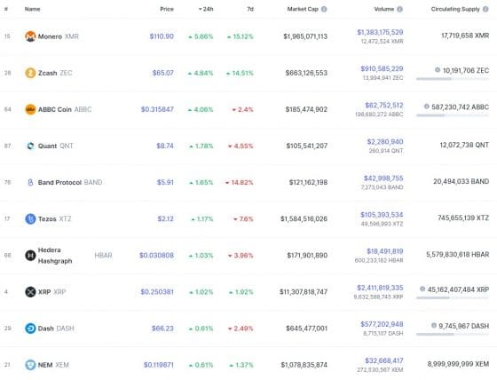 * 톱100 중 상승률 상위 10개 코인 (출처: 코인마켓캡)