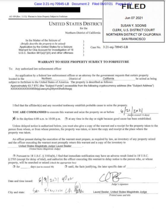독립 언론인 죠나단 샤츠엘(Jordan Schachtel)이 압수수색 영장을 공개했어요. 북부 캘리포니아에서 영장이 집행됐어요. 윗 부분에 보면 XXXXX로 시작되는 긴 주소가 나와요. 비트코인 주소죠.