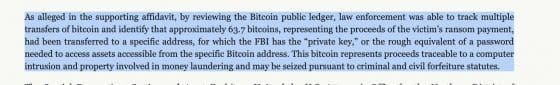 FBI가 해커들의 개인키를 해킹했다면 어떨까요? 비트코인은 개인키만 보관하고 있으면 해킹 당하지 않는다는 신화가 무너지는 거죠. 비트코인의 존립 기반이 사라져요. 미국 법무부는 홈페이지에 이 사실을 알리면서 “다크사이드로부터 230만 달러 상당의 암호화폐를 압류(SEIZE)했다”고 밝혔어요.