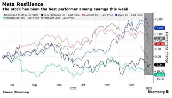 애플, 구글, 아마존, 메타(페이스북), 넷플릭스, 그리고 테슬라까지 대형 기수주들은 이번주 일제히 1~3% 하락세를 나타냈다.