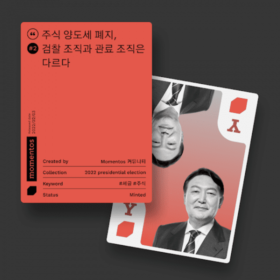 모멘토스는 이 공약의 옳고 그름을 떠나 실천 가능성에 의문을 제기합니다. 그래서 공약카드 2호로 NFT에 각인 합니다.