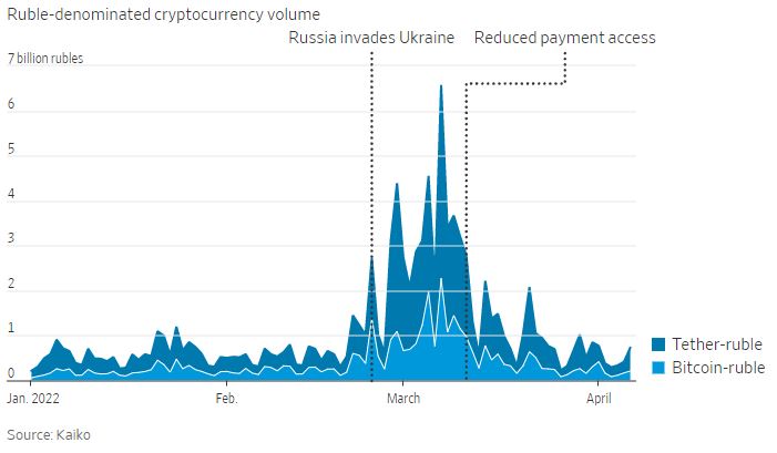 서방 주요국들의 우려와는 달리, 가상 자산을 이용한 러시아의 제재 회피 시도가 크게 나타나지 않는 상황이다.