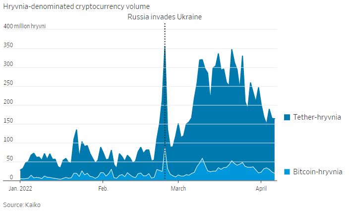 러시아 침공으로 혼란이 심화된 우크라이나에서는 전쟁 전 대비 높은 거래량을 나타내고 있다. 가상자산이 기존 금융 수요를 일부 흡수한 모습이다.