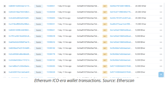 이더리움 ICO에 참여했던 이 지갑에서 이더리움이 이동한 것은 2019년 7월 이후 이번이 두번째다. 3년 전 이 지갑에서 비트파이넥스 거래소로 5000 ETH가 이동한 바 있다. 당시 이더리움 가격은 219달러였다.