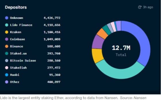 문제는 특정 스테이킹 업자들의 비중이 너무 크다는데 있다. 데이터 분석업체 난센에 따르면 리도 풀이 전체 스테이킹 물량의 3분의 1을 차지한다.