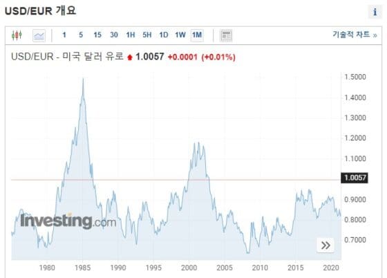 인베스팅닷컴에 따르면 달러가 유로화보다 비싸진 것은 2002년 10월이후 처음이다.