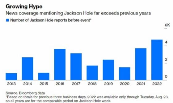 미국 언론들의 잭슨 홀 관련 보도 역시 역대급입니다. 잭슨 홀 개최 전 보도량이 10년 래 최고 수준입니다. 그만큼 경제 상황이 불안정하고, 변수가 많다보니, 잭슨 홀에 모인 중앙은행 관계자들로부터 답을 찾고 싶었던 것이죠.