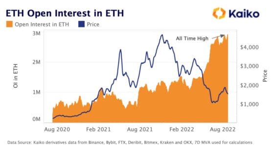암호화폐 분석업체 카이코에 따르면 이더리움을 대상으로 한 무기한 선물 거래의 미결제약정은 8월말 기준 사상 최고치를 경신했다고 6일 블룸버그 통신이 보도했다.