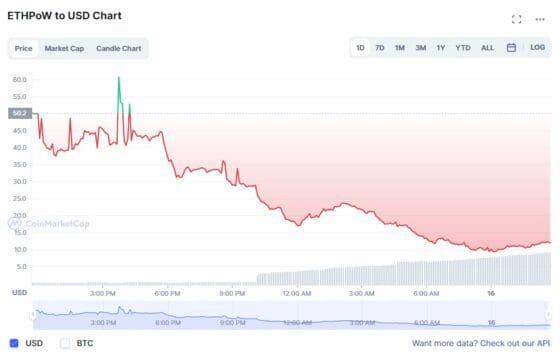 메인넷 출시후 ETHW 가격은 최고 60 달러 대에서 지금은 11달러로 내려온 상태다.