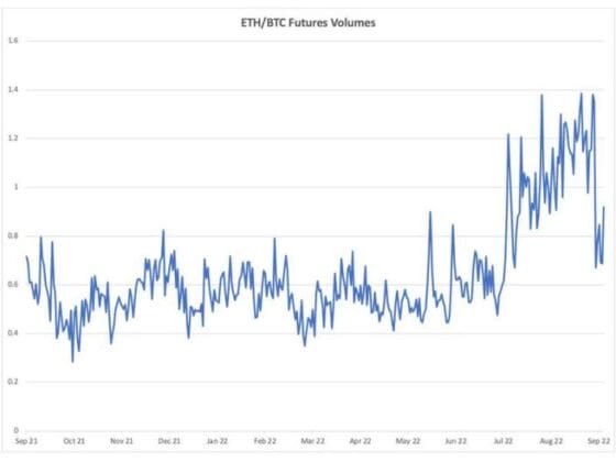 선물 참여자들이 이더리움 거래 규모를 키웠다는 뜻이다. 그러나 이같은 변화는 지난 7월부터 있었고, 일부 거래소에서는 개인 투자자들을 대상으로도 높은 레버리지 선물 상품을 판매하고 있기 때문에 이 숫자만으로 기관 투자자의 관심도 상승을 예단하기는 어렵다.