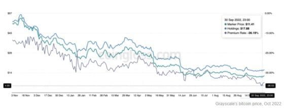 GBTC는 지난 달 30일 1만1400달러까지 떨어진 후 비트코인 가격이 2만달러를 회복하는 사이 1만2000달러 선으로 소폭 반등했다.