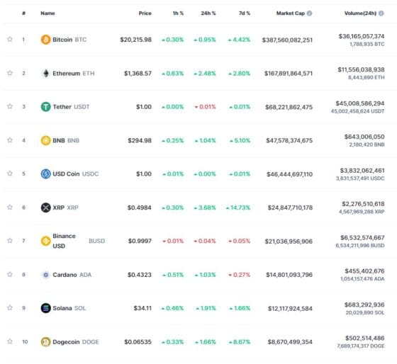 코인마켓캡에 따르면, 비트코인 가격은 뉴욕시간 오전 9시 기준 2만215.98달러로 24시간 전 대비 0.95% 상승했다.