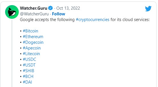 구글은 코인베이스 커머스 서비스와 결합해 클라우드 서비스에서 2023년부터 암호화폐로 결제할 수 있도록 했다. 이 기능은 시간이 지남에 따라 더 많은 사용자로 확대될 예정이다.