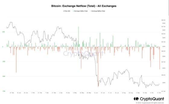 최근에는 비트코인이 1만8000-2만달러 범위에서 하락세를 멈추는 사이 대량의 비트코인이 거래소를 빠져나갔다는 점에서 반등 가능성이 제기된다.