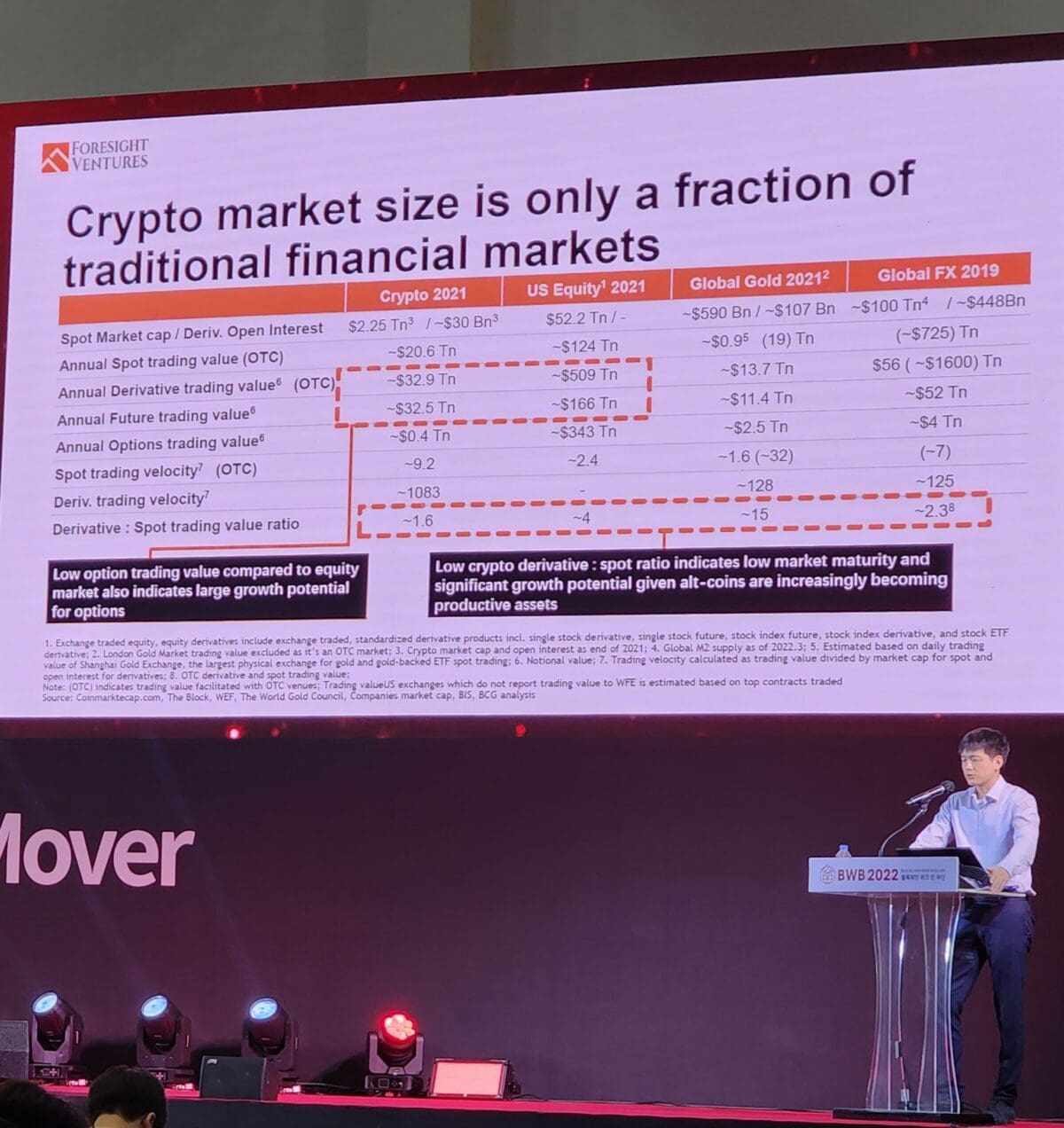 [주요 자산 시장 거래량과 현물거래 가치 비율, Foresight Ventures]
