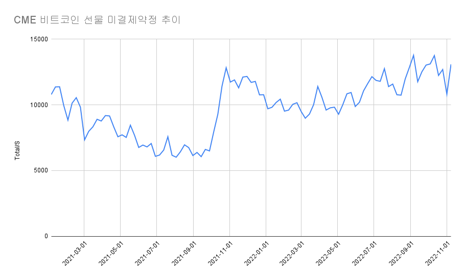 [블록미디어 최동녘 기자] 기관 투자자들의 비트코인 선물 미결제 약정 수가 증가했다. 미국 상품선물거래위원회(CFTC)가 발표한 시카고상품거래소(CME) 비트코인 선물 미결제 약정은 11월 1일 1만 808건에서 11월 8일 1만 3081건으로 2273건 늘었다.