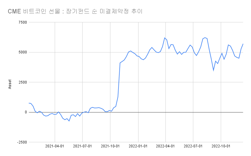 장기 투자 펀드는 롱 포지션을 늘렸다. 지난주 대비 순 미결제 약정은 434건 증가한 5713건을 기록했다. 장기 투자 펀드 비트코인 익스포저는 증가했다. 롱 포지션은 6681건, 숏 포지션은 968건을 기록했다. 롱 포지션은 전주 대비 124건 증가, 숏 포지션은 310건 감소한 수치다.
