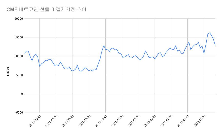[블록미디어 최동녘 기자] 기관 투자자들의 비트코인 선물 미결제 약정 수가 감소했다. 미국 상품선물거래위원회(CFTC)가 발표한 시카고상품거래소(CME) 비트코인 선물 미결제 약정은 12월 6일 1만 4499건에서 12월 13일 1만 2777건으로 1722건 줄었다.