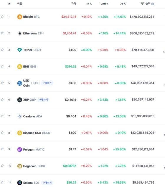 비트코인은 2만 5000달러 돌파를 지속적으로 시도하고 있다. 전일보다 1.20%% 오른 2만 4812.14 달러에 거래되고 있다.