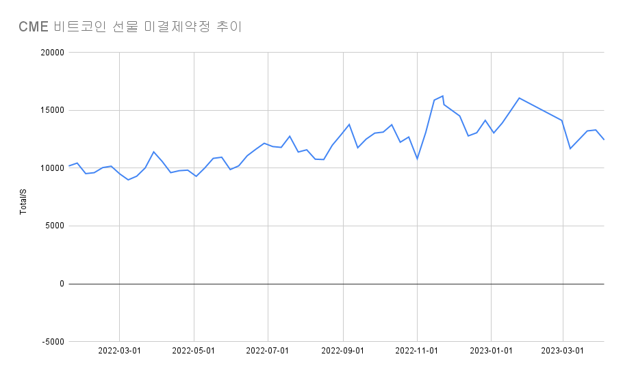 미국 상품선물거래위원회(CFTC)가 발표한 시카고상품거래소(CME) 비트코인 선물 미결제 약정은 4월 4일 기준 1만 2433건, 지난 발표치 대비 860건 줄었다.