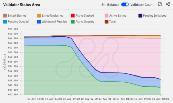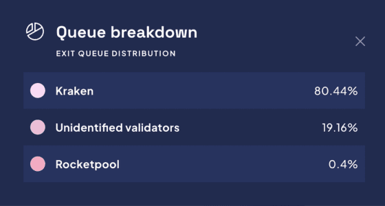 블록체인 분석가들은 현재 이더리움 인출 대기 중인 검증자의 약 80%가 암호화폐 거래소 크라켄과 연관돼 있음을 지적했다. 크라켄은 지난 2월 미국 증권거래위원회(SEC)와의 법적 문제 해결을 위해 미국 내에서의 스테이킹 서비스 중단을 결정했다.