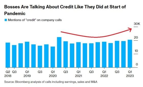 어닝시즌에서 주요 기업 CEO들이 신용(credit)이라는 단어를 언급하는 횟수가 증가하고 있습니다. 신용과 관련한 위험 상황을 기업 경영진들이 우려하고 있다는 또 다른 신호입니다.