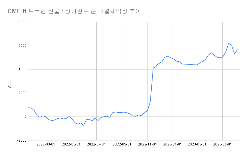 장기 투자 펀드 롱 포지션은 6282건, 숏 포지션은 327건을 기록했다. 롱 포지션은 전주 대비 107건 감소, 숏 포지션은 41건 감소한 수치다. 미결제약정 롱/숏 배율은 19.2로 전번 발표 대비 1.8 늘었다.