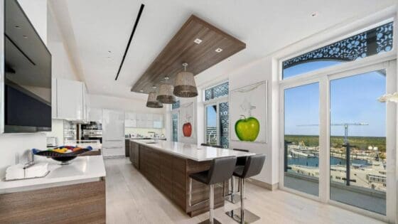 곡면 유리벽, 대리석 바가 있는 아일랜드 주방, 거실, 식당, 가족실, 도서관과 사무실도 있다. 두 개의 욕실, 두 개의 드레스룸, 모자이크 타일로 장식된 전용 스파를 자랑하는 마스터 스위트 룸 외에 각각 욕실이 딸린 침실이 4개 있다. 현재 가치는 3950만 달러라는 트위터 게시글도 올라왔다.