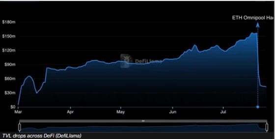 디파이 시장에서 7월 가장 큰 손실을 기록한 종목은 지난 주 해킹 공격으로 1700 ETH의 피해를 입은 코닉 파이낸스(Conic Finance)로, TVL이 65% 급감했다.