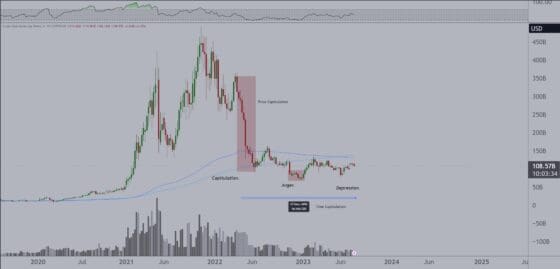 암호화폐 분석가 마이클 반데포프는 비트코인과 이더리움을 제외한 암호화폐의 주간차트에서 축적 추세가 이어지고 있으며, 이에 따라 시가총액이 좀 더 감소할 것으로 전망했다.