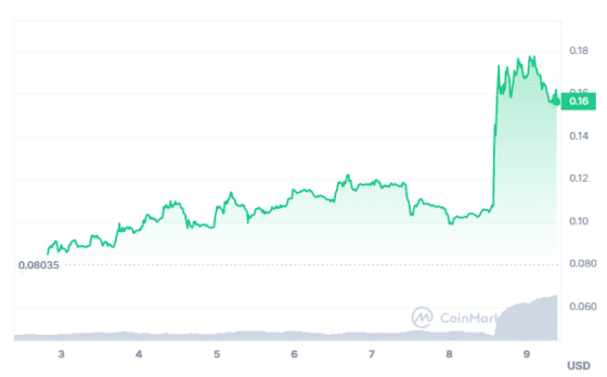 롤빗 코인 RLB는 뉴욕 시간 오전 9시 6분 코인마켓캡에서 24시간 전 대비 약 52% 오른 0.1561 달러를 가리켰다. RLB는 간밤에 0.1799 달러까지 전진, 사상 최고가를 기록한 뒤 상승폭을 축소했다.