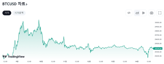 [블록미디어 AM매니지먼트] 트레이딩뷰 기준 비트코인은 일주일 전 대비 0.74 상승한 2만 9303달러로 양봉 마감됐습니다. 나스닥은 소비자 물가지수 발표 후 약세를 벗어나지 못하고 있습니다.
