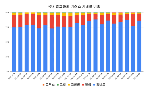 코인원, 코빗, 고팍스의 점유율을 모두 합쳐도 5% 미만이다.