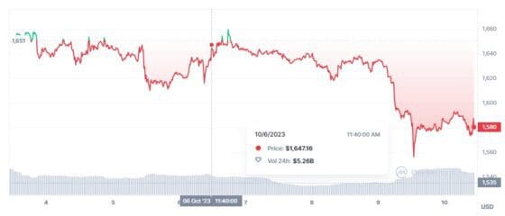 기술적 관점에서 이더리움은 주목해야 할 중요한 가격 수준을 기록했다. 강력한 지지선은 1498.81달러이며, 저항선은 1666.23달러 부근에서 형성되고 있다.