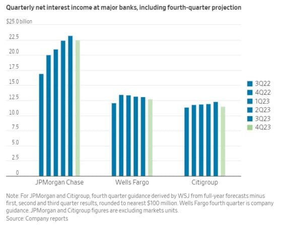 첫째, JP모건과 씨티그룹의 경우 예차 금리차(순이자 마진)가 더 벌어졌습니다. 이자 장사가 짭짤했다는 겁니다. 그러나 순이자 마진은 4분기부터 감소할 것으로 전망되고 있습니다.