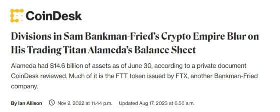 이 기사가 나간 후 2022년 11월 11일 FTX 파산까지 채 열흘이 걸리지 않았습니다.