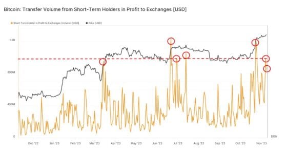 이러한 대규모 차익 실현은 올해 관측된 사례 중 가장 높은 수치로, 실리콘밸리 은행 붕괴 이후, 6월의 3만 달러 돌파 상승, 최근 비트코인이 2만 5000 달러에서 상승하기 시작했을 당시의 움직임에 비할 만한 기록이다.